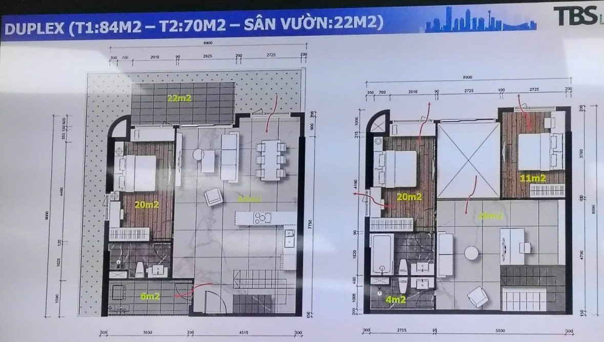 Diện tích sản phẩm: từ 43 m² – 230 m²