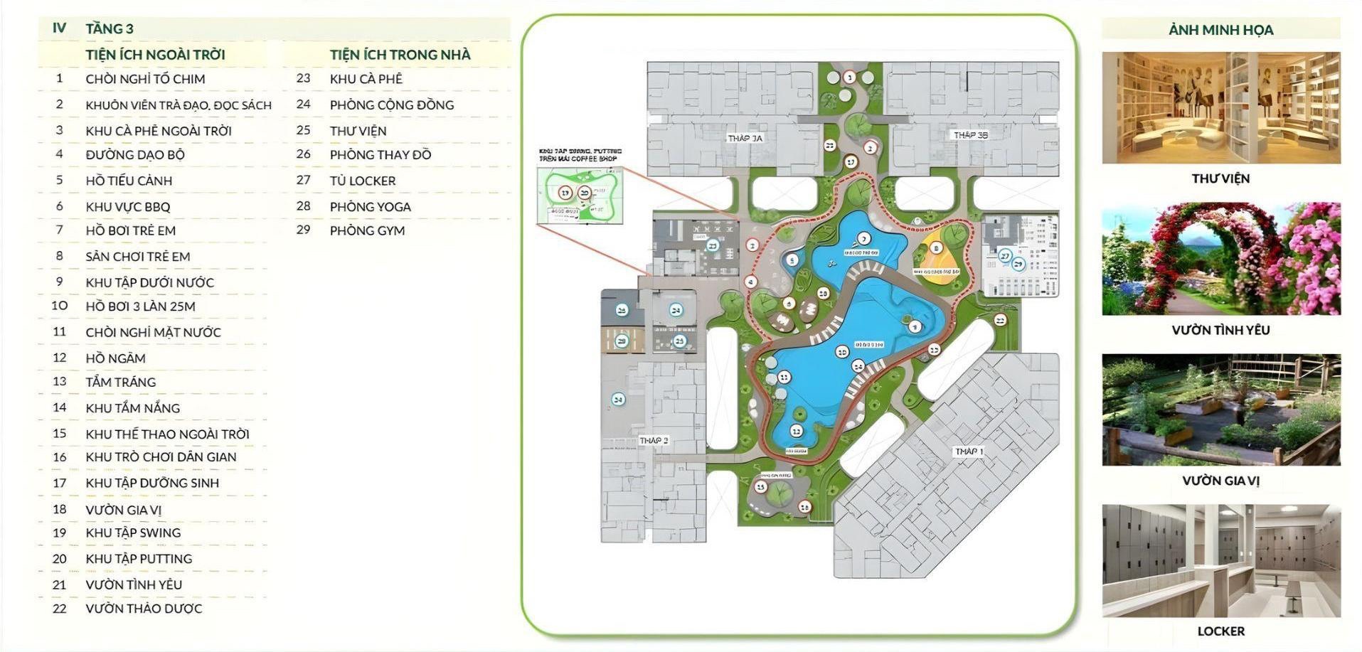 Tiện ích: Hệ thống 68+ tiện ích đẳng cấp như hồ bơi, công viên, khu thể thao, trung tâm thương mại, nhà trẻ và khu sinh hoạt cộng đồng,..